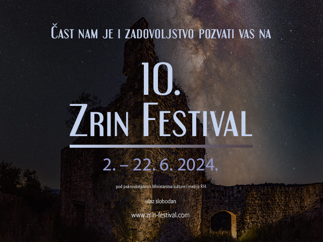 Uoči 730. obljetnice prvog spomena grada Zrina, u nedjelju, 2. lipnja u 17 sati u Zrinu održat će se otvorenje 10. Zrin festivala za koje organizatori najavljuju spektakl: polukoncertnu izvedbu opere Nikola Šubić Zrinski skladatelja Ivana pl. Zajca, na otvorenom – uz ostatke gotičke crkve Sv. Marije Magdalene – u izvedbi Hrvatskog vokalnog ansambla Sv. Blaž, sastavljenog od najistaknutijih hrvatskih opernih pjevača. Na koncertu otvorenja ansambl će praizvesti i himnu Zrin, skladatelja Alana Kljaića na tekst Željka Krznarića.